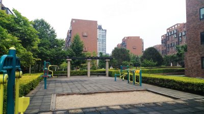小區(qū)綠化率約40%,綠化較好; 小區(qū)采取了人車分流,居民出入順暢。